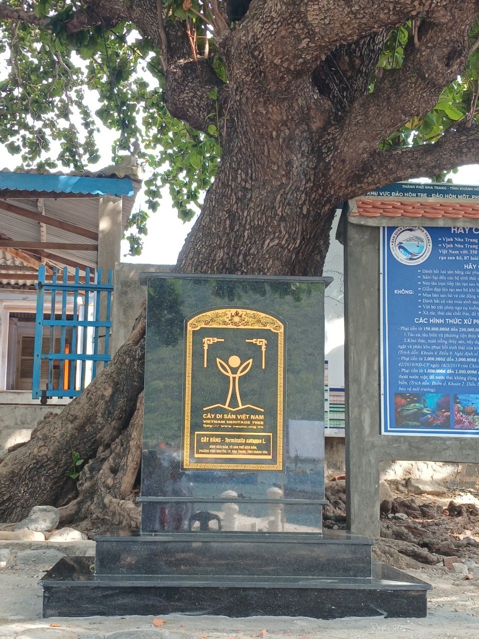 Đây là cây Bàng có kích thước lớn nhất được ghi nhận ở TP. Nha Trang, với chu vi gốc 6,1m (đường kính gốc 1,9m); chiều cao cây 21m. Là loài cây gỗ lớn, thay lá hàng năm, gốc có bạnh to, được trồng nhiều ở ven biển và trên các hòn đảo.